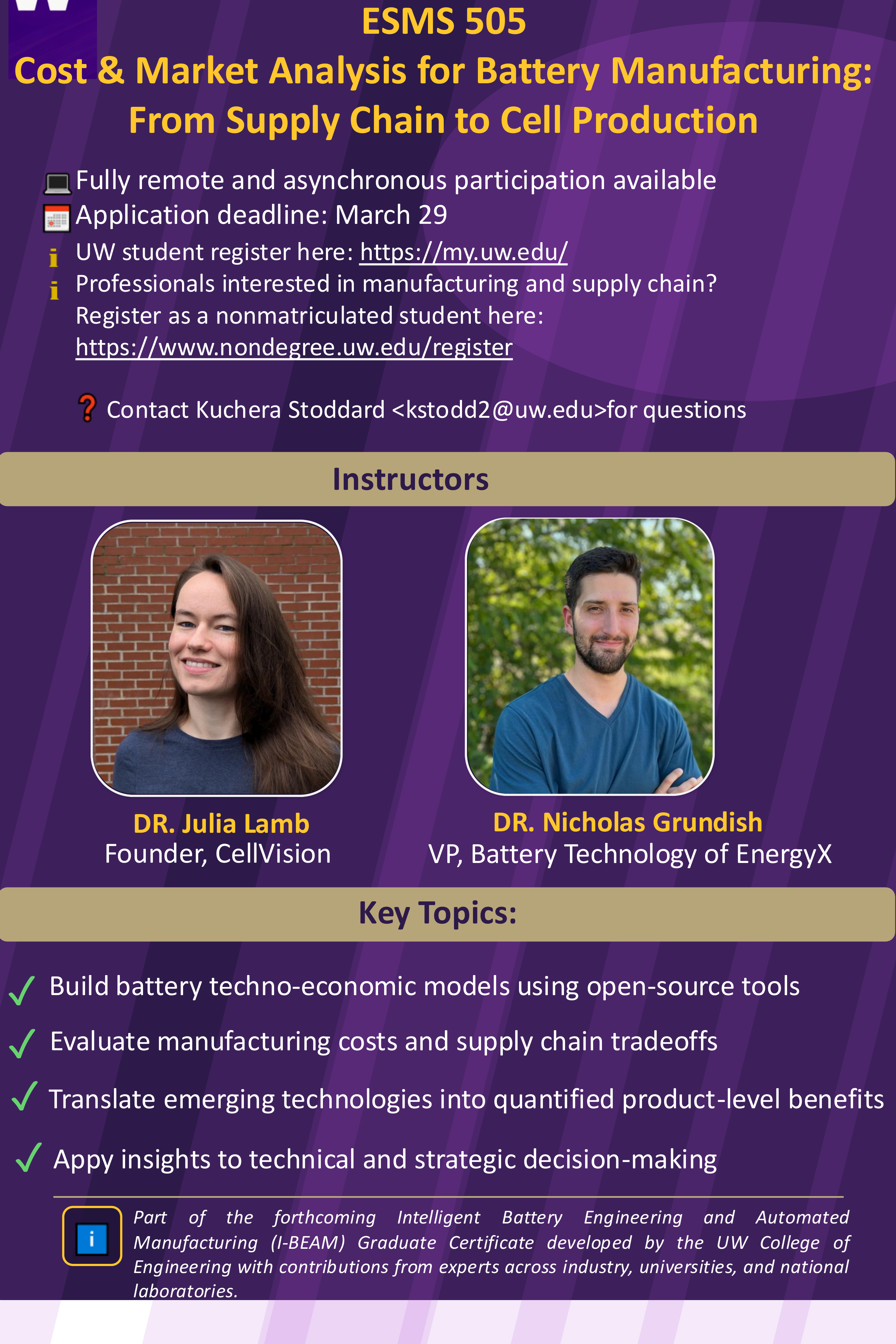 ESMS 505 — Cost & Market Analysis for Battery Manufacturing